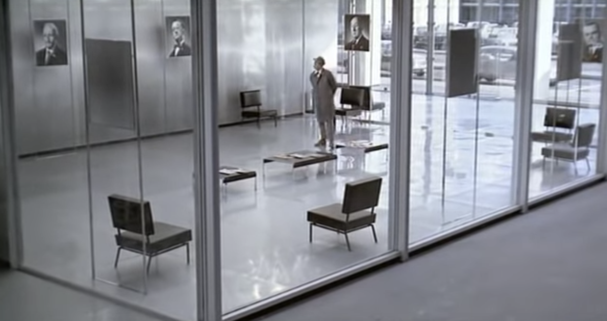The world-weary narrator watches the movie with us and seems unimpressed. We see a car pulled off to the side of the road with a man trying to fix the engine while his wife has a smoke in the front seat. All the narrator can bring himself to say is “Vacation time. Man and wife. Unaware of scientific progress.”