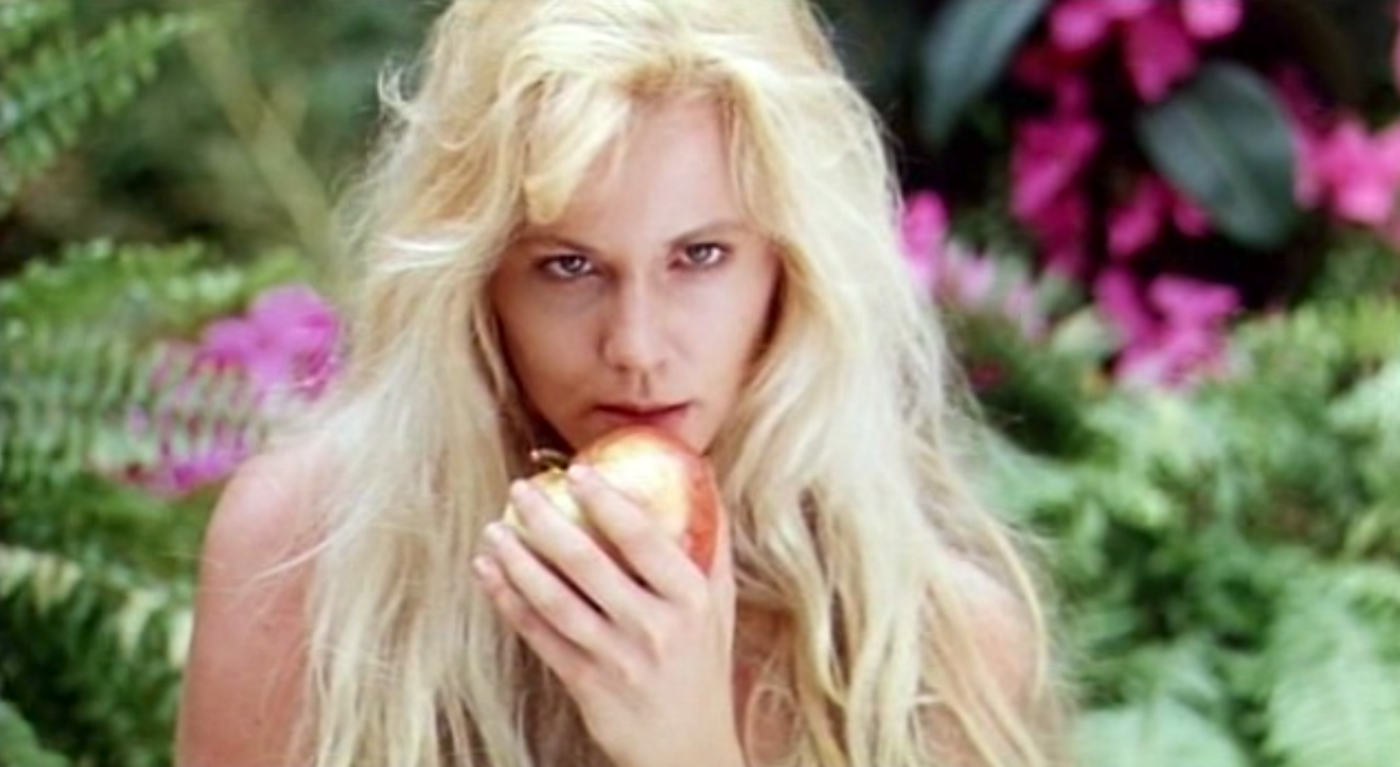 This gem was written and directed by Luca Damiano, a prolific, Italian porn director. He made Alice in Pornland in 1993. The opening scene just dives right in. Alice is lying on her bed wearing nothing but an enormous wig. She gazes down at her body and looks longingly in her mirror. Now, I’m just a regular guy so my knowledge is limited when it comes to these things but I find it hard to believe that when women wake up in the morning and decide to tickle the taco they recite the following lines as Alice did in the movie ”I love to touch myself. I like to caress my smooth skin. How I wish to make love to myself. I desire you my treasure.” Maybe they should.